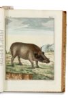 PALLAS (Peter Simon) Spicilegia zoologica quibus novae imprimis et obscurae animalium species iconibus, descriptionibus atque commentariis illustrantur. Fasciculus primus (- decem.). Berolini, apud G. A. Lange, 1767-1774. 10 parties (sur 14) en 1 vol. in-4, pagination multiple, planches, basane racinée époque, dos lisse orné, pièce de titre rouge, roulette dorée bordant les plats et les chasses, double filet doré aux coupes, tranches dorées (dos passé et frotté, coiffe de tête et coins usés, griffures aux plats; accroc en marge de 10 f. de texte, rousseurs sur certaines pages du texte). Belle réunion des 10 premières livraisons de ce traité de zoologie, en édition originale. L'illustration se compose de 43 planches gravées sur cuivre par C. B. Glasbach, et coloriées. (Nissen ZBI 3071)