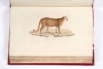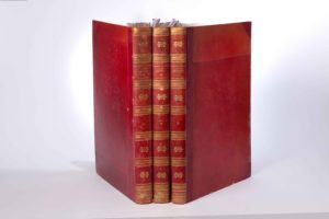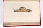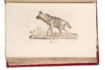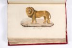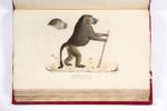 CUVIER (Frédéric). SAINT-HILAIRE (Geoffroy) Histoire naturelle des mammifères, avec des figures originales enluminées, dessinées après des animaux vivants. Paris, C. de Lasteyrie, 1820-1822. 3 volumes in-folio, demi-maroquin à long grain et à coins rouge époque, dos lisse, auteur, titre, tomaison, roulettes et fleurons dorés, non rogné (des coins émoussés, qq. frott. aux coupes; au t.2, frott. aux plats et accroc à la coiffe de queue, petit accroc au plat sup. du t.1; qq. rousseurs,; qq. déch. marginales négligeables). « Un des ouvrages les plus exacts et les mieux exécutés que l'on ait encore donné sur les mammifères » (Brunet). Paru sous les auspices du Muséum d'Histoire naturelle de Paris, et rédigé par deux des plus brillants zoologues français de l'époque, cet imposant ouvrage se distingue autant par la précision scientifique de son propos, que par la qualité de ses illustrations, réalisée par de brillants artistes lithographes du temps, d'après des dessins réalisés sur les modèles vivants. Publié en 72 livraisons entre 1818 et 1842, l'ouvrage complet renfermerait 430 ou 432 planches accompagnées du texte correspondant. Les exemplaires complets sont de la plus grande rareté. Cet exemplaire réunit les 36 premières livraisons, soit 216 planches lithographiées et coloriées. Il a conservé de grandes marges (h = 54 cm.); en revanche, il n'a pas de pages de titre (nous donnons le titre figurant sur les couvertures), ni le feuillet de prospectus annoncé. Collation détaillée sur demande. (Brunet II, 1535; Nissen ZBI 1525)