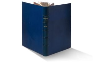 RAFFET (Auguste) Albums lithographiques. [N° 1 à 8]. Paris, Impr. lith. de Gihaut frères, 1830-1837. 8 parties en 1 volume in-folio, maroquin bleu, dos à 5 nerfs saillants, titre et dates dorés, double filet doré aux coupes, coiffes guillochées, contreplats bordés de maroquin orné de 8 filets et de fleurons angulaires, le tout doré, l'ensemble sur onglets et non rogné [Carayon] (griffure au plat inf., lég. frott. aux bords des nerfs, coiffes et coins). Bel exemplaire de la collection complète de ces huit albums lithographiques parus de 1830 à 1837. Chacun se compose d'un titre et de 12 lithographies originales d'après Auguste Raffet. Soit 8 titres et 96 planches. Les planches ont de grandes marges, elles mesurent 39 x 28 cm., quelques-unes sont plus courtes (menus défauts en marges)