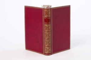 BARBEY D'AUREVILLY (Jules) Les diaboliques. Paris, E. Dentu, 1874. In-12, [1] f. (faux-titre), VIII p., p.8-354, [1] f., maroquin rouge à longs grains postérieur, dos à 5 nerfs ornés d'un pointillé doré, auteur et titre dorés, caissons richement ornés, triple filet et roulette dorés bordant les plats, double filet aux coupes, roulette intérieure, tranches dorées (un coin émoussé, petit accroc en pied du plat inf., rares rousseurs sporadiques). Édition originale contenant les 6 première nouvelles