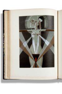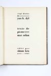 DYL. MAC ORLAN (Pierre) La danse macabre. Vingt dessins de Yan B. Dyl. Paris, Simon Kra, 1927. In-4, demi-maroquin brun à coins époque, dos lisse orné d'un jeu de petits fers dorés, auteur et titre doré, tête dorée, couv. et dos conservés (frott. légers aux coins et mors sup.; des transferts ordinaires). Édit. orig. tirée à 325 exemplaires: un des 20 sur Hollande Van Gelder Zonen (n° 26, second papier après 20 japon impérial), comprenant une suite sur Hollande de toutes les illustrations. Splendide ouvrage illustré de 20 grandes compositions à pleine page, et d'une vignette sur la couverture, rehaussées de couleurs au pochoir. C'est le livre majeur du peintre et illustrateur Yan Bernard Dyl (1887-1944), l'un des membres éminents du mouvement Art déco. La vignette de la couverture est reproduite en couleurs sur un feuillet après la page de titre, et à nouveau en noir sur un feuillet suivant l'achevé d'imprimer