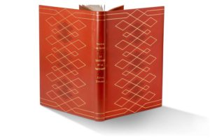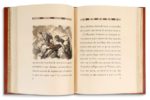 CHADEL. GUÉRIN (Maurice de) Le centaure et la bacchante. Poèmes en prose... Paris, Le Livre contemporain (Impr. Marthe Fequet), 1931. In-4, veau fauve, dos lisse, noms et titre dorés, plats décorés d'une composition géométrique constituée de pointillés noirs et filets dorés, ceux-ci prolongés au dos, contreplats bordés de veau orné de pointillés noirs en angle et d'un filet doré, doubles gardes de papier velours havane et imprimé à motifs, un tirage d'une planche sur satin doré inséré au contreplat sup., couv. gaufrée et dos conservés, tranches dorées sur témoins, chemise doublée et étui assortis [G. Cretté]. Édition illustrée de 49 bois en couleur d'après les compositions du peintre Jules Chadel (1870-1941), gravés par lui-même et avec le concours de Germaine de Coster et Savinienne Tourrette, et tirés à la main par Yoshijito Urushibara. « Une des meilleures illustrations de Jules Chadel » (Carteret). Tirage limité à 121 exemplaires sur papier japon, celui-ci n°93 nominatif pour Jacques André. Enrichi de 6 dessins originaux, et de 3 planches d'essai, dont une signée par l'artiste au crayon, les deux autres comprenant au verso des lettres signées de Chadel, adressées à Jacques André et concernant les dessins envoyés, et un essai de titre illustré pour La Bacchante, signé. Sobre et élégante reliure de Georges Cretté. Ex-libris de Jacques André, libraire à Orléans, gravé par Jacques- Emile Laboureur. (Carteret, Trésor, IV, 194). Lot 400 72 Livres