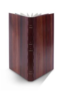 RONCEREL. SALAGER (Annie) La chasse à la gazelle. S.l., Manière Noire Editeur, 1999. In-4, reliure entièrement réalisée en bois, le dos y compris, noms d'auteur et titre en blanc, les plats formés d'un assemblage de teintes variées, non rogné, couv. et dos conservés, montage sur onglets, étui en bois assorti [A. Taral]. Édition originale illustrée de 4 gravures originales à la manière noire, et d'un collage sur la couverture, par Michel Roncerel (1946-2007). L'ouvrage a été réalisé sur les presses à bras de l'artiste, à Reviers, en février 1999. Tirage limité à 14 exemplaires sur fort vélin d'Arches, signés par l'auteur et l'artiste, celui-ci n° 14. Très belle reliure originale conçue et réalisée par Alain Taral