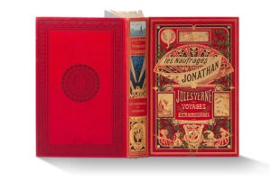 VERNE (Jules) Les naufragés du Jonathan. Paris, Collection Hetzel, [1909]. Grand in-8, 12 …