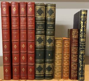 - EUGENE SUE. Le Juif errant. 1845. 4 volumes. - J.J. ROUSSEAU. Julie ou la nouvelle Héloise. 1845. 2 volumes. - CHARLES PERRAULT. Contes du temps passé. 1843. 1 volume. - ALPHONSE DAUDET. Sapho. 1884. 1 volume. - VIRGILE. Carmina omnia. 1858. 1 volume. - HORACE. Opera. 1855. 1 volume.