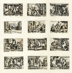 Hans Sebald BEHAM, Le fatiche di Ercole. — 1542-1548. — Bulino. mm 48/52x68/75. — Bartsch, 96-107. — Hollstein, 98-109.