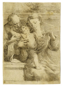 Bartolomeo BISCAINO, Sacra Famiglia. — 1650-1657 [tiratura XVIII secolo]. — Acquaforte. mm 177x125. — Foglio : mm 182x129. — Bartsch, XXI, 16.