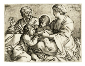 Annibale CARRACCI, Madonna della scodella. — 1606. — Acquaforte e bulino. — mm 123x161. — Foglio : mm 125x165.