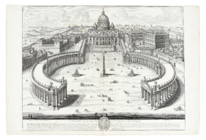 Giovanni Battista FALDA , La Basilica Vaticana consacrata al Principe de gli Apostoli... — Roma : Gio. Giacomo Rossi alla Pace, post 1667. — Acquaforte e bulino. mm 480x628. — Foglio : mm 498x740.