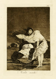 Francisco GOYA y LUCIENTES, Mala Noche! — 1799 [V edizione 1881-1886]. — Acquaforte e acquatinta brunita. — mm 215x150. — Foglio : mm 327x240.