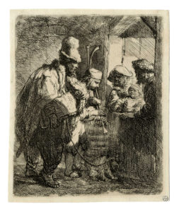 REMBRANDT HARMENSZOON VAN RIJN, I suonatori ambulanti. — 1635 ca. [XVIII secolo]. — Acquaforte. mm 138x115. — Foglio : mm 148x120.