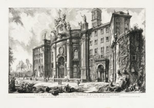 Giovanni Battista PIRANESI, Veduta della Facciata della Basilica di S. Croce in Gerusalemme. 1750. — Acquaforte. mm 405x617. — Foglio : mm 495x708.