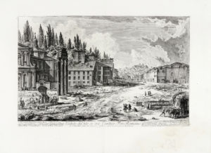 Giovanni Battista PIRANESI, Veduta del Sito, ov'era l'antico Foro Romano. — 1756. — Acquaforte. — mm 373x592. — Foglio : mm 540x740.