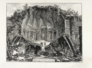 Giovanni Battista PIRANESI, Avanzi del Tempio del Dio Canopo nella Villa Adriana in Tivoli. — 1768. — Acquaforte. — mm 454x580 — Foglio : mm 540x735.