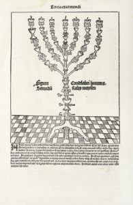 Hartmann SCHEDEL, La Menorah e altre tavole di Judaica. — 1493. — Xiografia. mm 330x230. — Foglio : mm 450x315.
