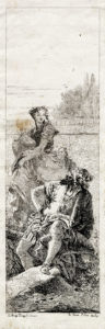Giandomenico TIEPOLO, Uomo seduto e donna che porta un vaso. — 1755 ca. — Acquaforte. — mm 277x90.