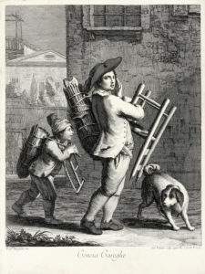 Marini, 62, 63,68. Tre tavole da Le arti per via, serie di dodici incisioni dedicate ai mestieri di strada e tratte da dipinti di Francesco Maggiotto. Bellissime prove di grande freschezza dall'edizione veneziana di Niccolò Cavalli, stampate su carta vergellata con filigrana "tre mezzelume e contromarca" visibile su due tavole, "piccolo stemma con lettere A.S" visibile sulla restante. (3)