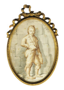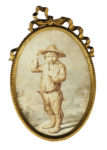 Giacomo Francesco CIPPER (detto il Todeschini) [attribuito a], Coppia di giovani pitocchi. — 1705-1710 ca. — Pennello e acquerello grigio e marrone su foglio in ovale, carta color avorio. — mm 235x170.