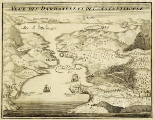 Nicolas De FER, Veue de Constantinople / Veue des Dardanelles de Constantinople. — Paris : chez l'Auteur, M.DC.XCV-M.DC.XCVII. 1695-1697 [ma Amsterdam : Pieter Mortier, 1695-ca. 1702]. — Bulino.— mm 225x285. — Foglio : mm 263x382.