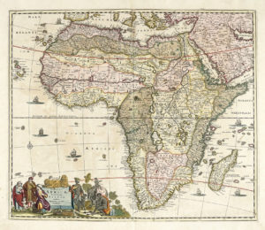 Frederick de WIT, Totius Africae accuratissima Tabula. — Amstelodami : 1680 ca. Incisione in rame in coloritura. — mm 487x580. — Foglio : mm 555x640.