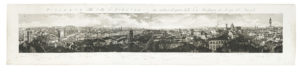 Incisione in rame, acquatinta su quattro lastre. mm 1480x290. Foglio : mm 1527x310. Mori/Boffito, p. 118. Con il titolo in alto e in basso a destra "L. Garibbo dis. e inc.". Al margine inferiore rimandi non numerati ai luoghi con tratteggio indicativo in corrispondenza dell'immagine nell'inciso. La veduta non è datata, l'anno di esecuzione "1865" è stato desunto da una lettera che Garibbo inviò insieme a un esemplare di questo suo grande panorama a Giacomo Tartagli e datata "31 gennaio 1865". Veduta di grande rarità. La tavola è pervenuta in custodia cilindrica in cartone pesante ricoperto di carta marmorizzata con tassello in carta con la scritta "Panorama di Firenze". (1)