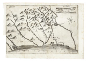 Johannes LINDEMANN, Tavola dimostrante l'impossibilità che il Fiume Luso sia mai stato l'antico Rubicone / Seconta tavola Itineraria del Peutingero (Rubicone). — In Faenza : per l'Archi Impressor Camerale, e del S. Ufizio, 1755. — Incisione in...