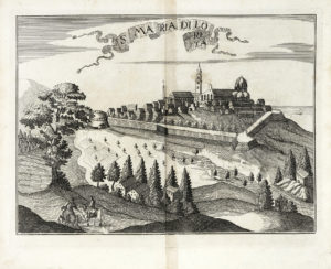 Johann Christoph WAGNER, S Maria di Lo / Re / ta. Augsburg : Jakob Koppmayer, 1685. — Foglio integro con margini come in origine. — Piega di legatura in verticale al centro con residuo di brachetta cartacea al verso, e pieghe editoriali da...