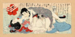 Piccolo portfolio in stoffa damascata verde contenente tre serie di tavole erotiche per un totale di 34 stampe di autori ed epoca diversa comunque prodotte in Giappone tra la fine del XIX e gli inizi del XX secolo. (34)
