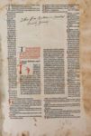 (1483). CORPUS JURIS CIVILIS. CODEX JUSTINIANUS. Milan, Johannes Antonius de Honate pour Petrus Antonius de Castelliono et Ambrosius de Caymis, 3 Mars 1483. Fort in-folio de 291 feuillets, basane brune (reliure postérieure). Belle et grande impression gothique en rouge et noir sur 2 colonnes du Codex Justinianus avec d'importants commentaires placés tout autour; l'exemplaire est entièrement rubriqué à la gouache rouge et bleue et imprimé aux frais d'Antoine Castellion et d'Ambroise de Caymis. Qq. annotations, cernes et mouillures en marge de fond, reliure usée. Exemplaire conforme à celui numérisé à Munich, sans le feuillet a. (ISTC, ij00579000).
