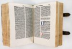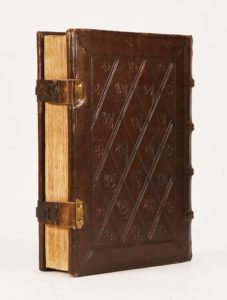(1492). VERCELLI (Antonius de). SERMONES QUADRAGESIMALES DE XII MIRABILIBUS CHRISTIANAE FIDEI EXCELLENTIIS. Venise, Joannes et Gregorius de Gregoriis frates de Forlivio pour Alexandre Cacedonius, 16 février 1492. In-4° gothique de 263-[5] feuillets, veau brun sur ais de bois estampé de croisillons et motifs à froid, dos à nerfs, fermoirs de métal, attaches (reliure moderne). Première édition. Elle renferme les annotations de Ludovico Brognolo et sa dédicace datée de Novembre 1491. Petite réparation en haut du titre, bel exemplaire entièrement rubriqué en rouge et bleu, l'impression est très soignée sur 2 colonnes. La reliure est particulièrement bien exécutée. (ISTC, ia00918000) (Brunet I, 335).
