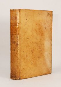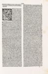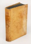 (1502). PLUTARQUE. VITAE NUPER QUAM DILIGENTISSIME RECOGNITAE: QUIBUS TRES UIRORUM ILLUSTRIUM VITAE ADITAE FUERUNT. Venise, Donnino Pinzi, 15 février 1502. 2 parties de [1]-145 et 151 feuillets, en 1 volume in-folio, velin rigide, tranches bleues (reliure ancienne). Précieuse édition commentée par Girolamo Squarciafico, ornée d'une très belle gravure sur bois admirablement conçue et placée dans un cadre à fond noir (150 x 140 mm) représentant Thésée combattant le Minotaure dans une arène en bois tressé. Les attitudes des deux combattants et la conception du sujet rappellent l'œuvre graphique d'Antonio Pollaiolo, peintre et sculpteur florentin du XV° siècle, notamment célèbre pour sa gravure d'hommes nus combattants. Petits manques en marge des 5 premiers feuillets, titre sali, quelques taches claires sur certains feuillets, petite galerie marginale sur les derniers. Une importante note manuscrite de la librairie Olschki est collée sur le contre plat. (Sander, 5784) (USTC 849953).