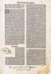 (1508). BERNARD DE CLAIRVAUX. [OPUS PRECLARUM SUOS COMPLECTENS sermones de tempore, de sanctis et super cantica canticorum, aliosque plures eius sermones et sententias...]. Paris, André Bocard pour Jean Petit, 1508. In-folio gothique de [21(sur 22)]-337-[97] feuillets, veau fauve, dos à nerfs (reliure de l'époque). Très belle impression gothique sur 2 colonnes agrémentée de lettrines à fond criblé. C'est la première édition des œuvres complètes de Saint Bernard; elle a été collationnée sur les originaux de la bibliothèque de Clairvaux, donnée par Jean Petit et sera suivie d'une seconde en 1513, puis en 1515 et 1517. Titre manquant, cernes et petites taches d'encre sur quelques feuillets, ex-libris manuscrit d'un monastère des capucins, qq. annotations manuscrites (DTC II, 758) (USTC, 143397).