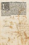 (1509). ORDONNANCES ROYAULX DES FEUZ ROYS CHARLES VII. ET VIII. DE CE NOM AVEC CELLES DU ROY LOYS XII. AUQUEL DIEU DOINT BONNE VIE. Et plusieurs autres ordonnances fictes puis nagueres tant pour les universitez que pour les monnoyes, orfeures, geolliers, et autres avec le texte de la pragmatique sanction et repertoyre en chascune dicelles ordonnances pour trouver facillement les matières. Lyon, par Claude Davost, le 19 Décembre 1509. In-8 gothique de [11]-108 feuillets mal chiffrés, demi-chagrin anthracite (reliure du XIX°). Collection intéressante des lois proclamées par ces trois rois de France. Belle impression gothique d'une grande rareté. Ce serait la première et la seule édition imprimée à Lyon. Brunet ne cite de ce recueil qu'une édition avec la date de 1510. (USTC, 52227, 1 ex.) (Pas dans Baudrier) (Brunet IV, 212). Relié à la suite, chez le même imprimeur, le 22 décembre 1509: -INCIPIT TEXTUS PRAGMATICE SANCTIONIS de 12 feuillets non foliotés. Marque de Martin Boillon au dernier feuillet. Les premiers feuillets tachés, mouillures marginales aux derniers.