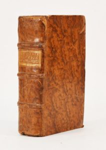 (1512). PLATINA. HYSTORIA DE VITIS PONTIFICUM. Lyon, Gilbert de Villiers, Vincent de Portonariis et Constantin Fradin, 22 février 1512. In-8 de 367-1bl.-[4] et 133 (sur 134) feuillets, basane marbrée, dos à nerfs, tr. rouges (reliure du XVIII°). Auteur du célèbre livre «De l'honnête volupté de toutes les viandes et choses que l'on mange», B. Platine (1421-1481) était bibliothécaire au Vatican. Son histoire des papes écrit à la demande de Sixte IV, contient de curieux détails sur la vie des papes aux XIV° et XV° siècles. Cette édition renferme dans la seconde partie de petits écrits tels que le «De falso et vero bono, contra amores, de optimo...». Sur le titre un grand bois représentant l'auteur assis à son pupitre et écrivant; devant lui debout, le Christ vêtu des habits sacerdotaux entouré de prêtres coiffés et auréolés de la tiare. Erreur de foliotation de 48 à 51 sans manque de texte. Le titre et les 2 premiers feuillets réparés à l'angle avec léger manque de texte, un mors fendu. (Baudrier V, 411) (USTC 121349).
