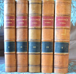 Aristote - (Aristotelis) - Opera omnia graece et latine cum indice nominum et rerum absolutissimo. Paris , Firmin Didot,1854-1883 , 5 vol. in8 demi basane marron. Texte grec avec traduction latine en regard. Bons exemplaires.