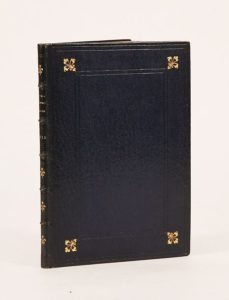 (1515). CURA CLERICALIS LEGE RELEGE. (Paris, Pasquier Lambert, 1515)? Petit in-8 gothique de 16 feuillets, maroquin bleu, fleurons dorés aux angles des plats, dentelle dorée intérieure, tranches dorées (Cuzin). Très rare petit manueld'information ecclésiastique donnant les noms des péchés et des vertus, des sacrements, etc... et indiquant la manière de calculer la date de Pâques. Titre sur 2 lignes et bois gravé montrant un lecteur. Très bel exemplaire. De la bibliothèque Fernand Gauthier avec son ex-libris gravé par Hamel. (USTC, 144396) (Moreau II, 1066).