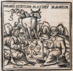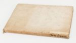(1516). CICERON. TUSCULANARUM QUESTIONUM LIBER V. Venise, Augustino Zanni de Portesio, 15 février 1516. In-folio de [6]-124 feuillets, cartonnage muet ancien. Edition de Lucas Panætius Olchinensis avec les commentaires de Philippe Béroalde et Omnibonus Leonicenus Vicentini, imprimée l'année où les Doges de Venise inventaient le premier ghetto de l'histoire. Titre imprimé en rouge et noir, illustré d'une grande vignette à l'effigie de Saint Barthélémy. Le texte contient en tête de chapitres 5 BOIS (85 x 85 mm), montrant des sages en situation philosophant. Quelques cahiers assombris, cernes. (Sanders, 1984) (Adams C, 1800).