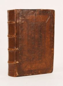 (1517). CHASSENEUX (Barthélémy de). COMMENTARIA... IN CONSUETUDINES DUCATUS BURGUNDIE PRINCIPALITER, ET TOTIUS FERE GALLIE CONSECUTIVE. Lyon, Jacques Marechal pour Simon Vincent, 17 Septembre 1517. In-4° gothique de [14]-382 feuillets, veau havane, plats ornés de motifs estampés, dos refait (reliure de l'époque). Edition originale rare du premier coutumier relatif au duché de Bourgogne. L'avocat Barthélémy de Chasseneux (1480-1541) né à Autun, offre dans son traité le modèle et la principale source du droit coutumier français, qui fut adopté jusqu'à l'introduction du Code Napoléon. L'ouvrage sera réimprimé d'innombrables fois. Belle impression lyonnaise à deux colonnes avec les titres courants en français, illustrée d'un grand titre imagé en rouge et noir gravé sur bois, répété au feuillet 12, de 2 petites gravures répétées montrant l'auteur offrant l'ouvrage à François Ier, de 2 lettrines historiées et enfin d'un bois à compartiment à pleine page au verso du dernier feuillet avec le nom de Symon Vincent. Bon exemplaire, le dos a été bien exécuté. (USTC, 84492, 1 ex.) (Baudrier XI, 398).