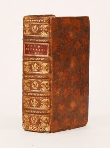 (1519). EGNAZIO (Giov. Batt.). NERVAE & TRAIANI, Atq. Adriani principum vitae ex Dione… Heliogabali principis ad meretrices elegantissima oratio. Venise, Alde et Andréa d'Asola, Août 1519. Fort in-8 de [8]-422-[2] feuillets, basane mouchetée, dos à nerfs très orné, tranches dorées (reliure du XVII°). Recueil des plus curieux qui se termine par l'Eloge de la ville de Rome par Aristide de Smyrne suivi de l'histoire des éruptions du Vésuve publiée par Mérula, ces 2 traités paraissant pour la première fois. Edition plus complète que celle de 1516 et dans laquelle on retrouve la préface d'Egnatius, cet exemplaire contient bien la partie Héliogabale que la pudeur a fait retrancher à quelques exemplaires. Titre doublé et consolidé sans manque, le feuillet 296 est blanc, le 396 blanc également est absent. Petits manques en bas du dos. (Renouard p. 87) (Adams S, 781).