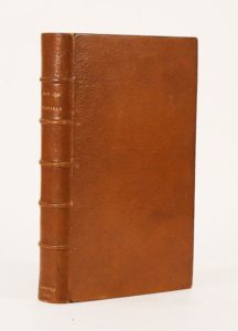 (1519). PONTANO (Giovanni). DE ASPIRATIONE LIBRI DUO - CHARON DIALOGUS... BELLI, quod Ferdinandus Senior Neapolitanus Rex cum Ioanne Ande ganiensium, libri sex. Venise, Alde, Avril 1519. In-8 de 318 feuillets, maroquin janséniste lavallière, dos à nerfs, dentelle dorée intérieure, tranches dorées sur marbrure (E. Thomas). Première édition aldine, ici non mutilée (cf. Brunet V, 808). Très bel exemplaire du second tome de l'œuvre de l'humaniste Giovanni Pontani (1429-1503), il est à grandes marges et entièrement réglé à l'encre rouge. De la bibliothèque Renard avec son ex-libris. (Renouard, Alde, 147 n°7).