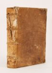 (1519). FLAVIUS (Joseph). PRAECLARA OPERA non parva accuratione... De antiquitatibus libri viginti. De Judaico bello. Paris, François Regnault et Antoine Bonnemère, 1519. 3 parties en 1 vol. in-folio gothique de 194 (sur 195)-110-[88] feuillets, daim, dos à nerfs (reliure de l'époque). OEuvre célèbre de l'historien juif procurée par Robert Goulet. Elle renferme les 20 livres des Antiquités judaïques qui sont de la plus haute importance pour l'archéologie, pour l'étude des textes comme pour celle des monuments, la guerre des Juifs en 7 livres qui rapportent les évènements du siège de Jotapat auquel participait l'auteur et enfin le Contre-Appion en 2 livres. Belle édition très bien imprimée de ce grand classique de l'histoire juive. Mouillures en marge de fond sur plusieurs feuillets. Le feuillet 89 est mal placé, importants manques au dos, le titre manque. (USTC 209947, pas d'ex.).