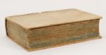 (1522). LUDOLPHE DE SAXE. VITA JESU CHRISTI redemptoris nostri ex fecundissimis evangeliorum sententiis et approbatis ab ecclesia doctoribus excerpta. Lyon, Guillaume Huyon pour Jacques Giunta et François Giunta, 12 avril 1522. In-4° gothique de [12]-411-[3] feuillets, velin rigide, dos à nerfs, guirlande à froid sur les plats tranches bleues (reliure du XIX°). Cet ouvrage paru pour la première fois à Strasbourg en 1474 fut l'un des écrits les plus répandus au XIV° et XV° siècle. Cette édition gothique lyonnaise sur 2 colonnes est ornée d'un titre imprimé en rouge et noir dans un encadrement renaissance avec un triptyque figurant la Nativité, le baiser de Judas et la crucifixion - que l'on retrouve au premier feuillet numéroté - et d'une CENTAINE DE PETITS BOIS (27 x 20 mm) qui agrémente la lecture. Ludolphe de Saxe, écrivain ascétique allemand était prieur de la chartreuse de Strasbourg. Bas du titre restauré sans manque, petit trou bouché au dernier feuillet, charnières ouvertes, rousseurs et qq. pages brunies. (Baudrier VI, 110) (Brunet III,1225) (USTC 155559, 9 ex.).