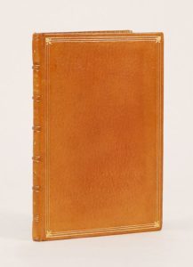 (1529) ALEXIS (Guillaume). LE GRANT BLAZON DES FAUSSES AMOURS. Composé par Frère Guillaume Alexis religieux de Lyre et prieur de Bussi. Lyon, Claude Nourry dit le Prince, le 6 Mai 1529. In-16 de 39-1bl. feuillets, maroquin ocre, triple filet doré avec petit fer dans les angles, dos orné, filet et mince roulette intérieure, tranches dorées (Koehler). Edition très rare de cette facétie publiée pour la première fois en 1486. Parmi les ouvrages en vers composés dans le dernier quart du XV° siècle, il n'en est aucun qui eut plus de succès que le Grant Blazon. Ce succès est attesté par plus de 25 éditions imprimées entre la date de l'originale et le tout début du XVII° siècle. Ce blazon des fausses amours est un dialogue entre un moine et un gentilhomme; ce dernier soutient le parti de l'amour, dont le moine ou l'auteur se déclare l'adversaire: à la suite 10 feuillets intitulés: «S'ensuyvent les Ditz non notables Et speculez dung très rude engin Tant en veritez quen fables Composez par Maistre Jehan Drouin». Exemplaire dans une fine reliure de Koehler, provenant des bibliothèques Coste (1854, n°768) et du prince Alexandre Galitzine, avec son cachet à l'encre bleue. Exemplaire un peu court en tête. Dos et bords passés. (Bechtel A-101) (Baudrier XII, 143) (USTC 11060, 2 ex.) (Brunet I, 143) (Gay II, 420).