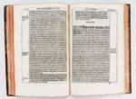 Première édition de cette rare chronique. Le titre imprimé en rouge et noir est orné de l'encadrement de Galliot du Pré, dont la grande marque se trouve au dernier feuillet. Le texte agrémenté de belles lettrines et encadré d'un filet noir est orné d'un grand bois représentant l'auteur offrant son livre à Louise de Savoie, mère de François 1er, entourée de prélats et de barons dans la manière des compositions attribuées à Pérréal.Un autre, plus petit, montre la reconstruction d'Angers. Très belle édition gothique imprimée «Pour honnestes personnes Charles de Boigne et Clément Alexandre marchands libraires demeurant à Angiers». Exemplaire avec le privilège daté du 3 décembre 1529. Etat intérieur à bonnes marges, les charnières sont fendues, restaurations sur les plats. Double avec cachet de vente du British Museum, daté de 1787. (Rothschild III, 2340) (USTC 7467) (Brun, le livre ill. p. 163).