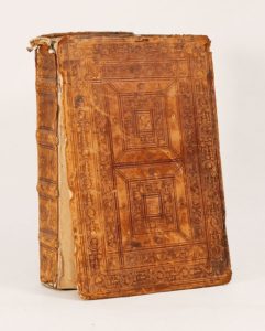 (1529). DIOSCORIDE. DE MEDICA MATERIA LIBRI V. - HERMOLAI BARBARA. IN DIOSCORIDEM COROLLARIORUM LIBRI QUINQUE. Coloniae, opera et impensa Joannis Soteris, 1529 et 1530. 2 parties de [28]-753-[1]-2bl. pages et [1]-79 feuillets (mal chiffr. 78), reliées en 1 volume in-folio, veau blond, plats estampés à froid avec encadrements composés de portraits (reliure de l'époque). Cette rare édition (latin et grec) reproduit le texte de celle de 1499 et a été éditée par l'humaniste italien Marcello Virgilio (1464-1521). Dioscoride décrit les propriétés médicales et les utilisations des minéraux, des plantes et des animaux. Ce livre contient un peu plus d'un millier de chapitres avec les informations suivantes : le nom le plus commun de la drogue, une description de l'élément naturel, la partie utilisée comme drogue et médicament thérapeutique, ses propriétés, les maladies pour lesquelles le médicament a été utilisé y compris la préparation et l'administration, le cas échéant, les contrefaçons et les méthodes d'authentification du médicament, ainsi que les autres utilisations telles que les cosmétiques, les produits vétérinaires... Bien complet de l'index (avec son titre daté) par l'humaniste italien Ermolao Barbaro (1454-1493). Un plat détaché et manques au dos. Ex-libris manuscrit sur le titre «Theodori Galli Oeringensis». (Adams D-655) (Waller. 2478) (USTC 683349 et 662198).