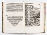 (1531). RODLER (J). EYN SCHÖN NÜTZLICH BÜCHLIN UND UNDERWEISUNG DER KUNST DES MESSENS… [Simmern, Hieronymus Rodler, 1531]. Petit in-folio de 45 feuillets, demi-chagrin émeraude, dos à nerfs, t. dorée (reliure du XIX°). RARE PREMIÈRE ÉDITION de ce premier travail très illustré sur la perspective et destiné aux peintres, sculpteurs, orfèvres, brodeurs, maçons et menuisiers, ce qui en fait le premier des «Livre artistique» ou Kunstbüchlein. Bien que généralement attribuée à Rodler, cette œuvre peut avoir été écrite et illustrée par son mécène, Johan II de Spfalfz-Simmern, comte palatin dont le nom se retrouve dans les grandes initiales des 54 paragraphes. L'illustration se compose d'un grand bois sur le titre montrant des artisans au travail, de 57 GRAVURES SUR BOIS ET DIAGRAMMES dont 3 petites figures, 20 diagrammes, (8 avec tracés perspectifs en rouge) et 27 remarquables figures, dont 17 à pleine page. Le tirage en est excellent, toutes sont monogrammées H.H. qui pourrait être Hans von Hunsrück. Cernes clairs, principalement marginaux. Mention augustine manuscrite en bas du titre «Homo Sine Charitate est Lampas sine Oleo» (Un homme sans charité est une lampe sans huile, Ndr.). (USTC, 656334, 19 ex.) (Brunet II, 913, art. Dürer, notice sur Rodler) (Berlin Kat. 4682).