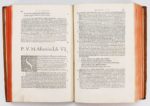 (1532-1529). VIRGILE. OPERA MAURI SERVII HONORATI GRAMMATICI (1532) - CASTIGATIONES ET VARIETATES LECTIONIS PER J. PIERIUM VALERIANUM. (1529). Paris, Robert Estienne, 1532-1529. 2 parties de [12]-709(mal chiffr. 707]-1bl.-[62]-177(mal chiffr. 205)-[25] pages, reliées en 1 fort volume in-folio, basane racinée, dentelle dorée sur les plats, dos à nerfs orné (reliure Directoire). Importante édition commentée des œuvres de Virgile, la seule donnée par Robert Estienne. Elle offre la première critique du commentaire de Servius, c'est en outre la première à utiliser le nouveau caractère romain qui va marquer l'esthétique du livre du XVI° siècle dans ses trois corps. Superbes et grandes initiales à fond criblé, attribuées à Geoffroy Tory. Le titre de la seconde partie (fac-similé) a été relié en tête. Ex-libris manuscrit «Bertin claromontanus 1590». De la bibliothèque F. Renard avec ex-libris (n° 59 du cat. 1927). (Schreiber, 45) (USTC 203367).