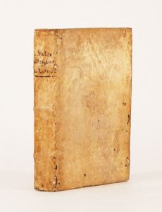 (1535). VALLA (Laurent). DE LINGUAE LATINAE ELEGANTIA LIBRI SEX. Lyon, Sébastien Gryphe, 1535. In-8 de 493-[40]-2bl.-[1] pages, velin (reliure ancienne). Célèbre traité de linguistique qui fut réimprimé d'innombrables fois aux XV° et XVI° siècles. Jolie édition avec les notes d'Angelo Rocchensi, elle est imprimée par Sébastien Gryphe dont la production est estimée pour son exactitude dans la ponctuation. Large tache brune sur les 40 premiers feuillets, taches éparses, cernes clairs. (USTC 146869, 5 ex.) (Baudrier VIII, 86).
