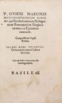 (1538). OVIDE. METAMORPHOSEON LIBRI XV... Jacobi Boni Epidaurii Dalmatae De raptu Cerberi libri tres. Bâle, Robert Winter, Mars 1538. In-8 de [16]- 127 pages, brochage, tranches dorées (reliure du XIX°). Rare epitome des 15 métamorphoses, préfacé par Ange Politien (1454-1494). Cernes clairs et petite galerie en marge. (USTC 682184, 9 ex.).