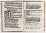 (1543). ARENA (Antonius). AD SUOS COMPAGNONES STUDIANTES QUI SUNT DE PERSONA FRIANTES BASSAS DANSAS IN GALLANTI STILO BISOGNATAS : ET DE NOVO PER IPSUM CORRECTAS ET IOLITER AUGMENTA CUM GUERRA ROMANA... Lyon, en la maison du Prince (Pierre de Sainte-Lucie), 21 novembre 1542. In-12 gothique de 48 feuillets, maroquin rouge, fleurons dorés aux angles et au centre des plats, dos à nerfs orné, dentelle dorée intérieure, tr. dorées (Chambolle-Duru). «Édition très rare, non citée par Brunet, de ces poésies en vers macaroniques (latin altéré où s'entremêlent des mots italiens, français et provençaux). On lit à la fin : «Explicit utilissimum opus guerrarum & dansarum impressatum in bragardissima villa de Leone per discretum hominem magisitu[m] Petrum de sancta Lucia / alias le Prince...» Le titre est imprimé en noir et rouge avec un petit blason gravé sur bois chargé de trois soleils rayonnants et devise «Partout Solies». L'auteur né à Solliers près de Toulon est mort en 1544. Le volume contient aussi des chansons en français et l'explication d'un système de notation chorégraphique fait à partir de caractères typographiques. Les éditions lyonnaises avant 1550 sont toutes publiées chez Cl. Nourry ou Pierre de Sainte-Lucie et ne sont connues qu'à très peu d'exemplaires. On lit en tête d'une écriture ancienne : «Seul exemplaire connu». Bel exemplaire établi par Chambolle-Duru. (USTC 158619 ed. de 1535, 1 ex.).